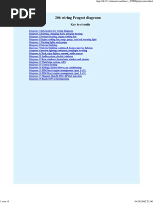 The fuse boxes are located under the fascia and in the engine compartment. Summary of contents for peugeot 206. Peugeot 206 wiring diagrams key to symbols. You'll then be shown the first 10 pages of this specific document, you can.